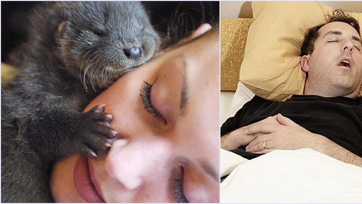 Някои спят с плюшена играчка, други спят с котенце, трети - с кученце, а четвърти - с видра на лицето. Тук-таме се намират и...